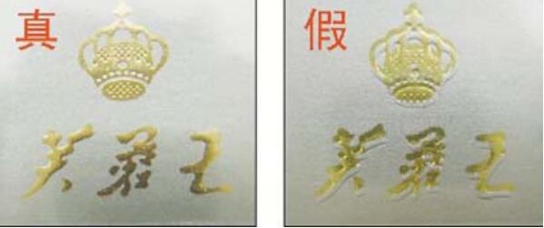 ②外包裝印刷質(zhì)量,真品芙蓉王香煙整體印刷質(zhì)量高,配色均勻;而假煙的印刷質(zhì)量則要低得多。