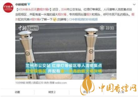 蘭州街頭吸煙區(qū)現(xiàn)巨無霸煙灰桶 很人性化