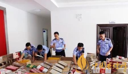 民警對查扣的走私煙、假煙進行清點登記