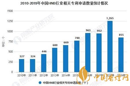 通過在Soopat上對“加熱不燃燒煙”的搜索,截至2019年年底,我國已有加熱不燃燒煙相關(guān)專利9278個(gè)。從整體來看,2013-2018年我國加熱不燃燒煙草的申請數(shù)量呈現(xiàn)上漲的趨勢,在2019年小幅度下滑,2019年HNB的相關(guān)專利申請數(shù)是855個(gè)。