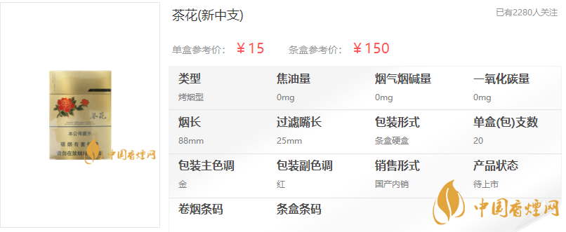 3、茶花:嗅味濃馥,煙氣純正、細膩、豐滿、清香久遠,干凈津甜。包裝裝潢:商標構思新穎,富有情趣。茶花的英文花體字與抽象的茶花構成一個富有韻味的圖案。