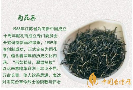后來,雨花臺(tái)一帶開始遍布蔥郁碧綠的茶園。雨花茶的色、香、味、形俱佳,她外形圓綠、條索緊直、峰苗挺秀,帶有白毫,猶如松針,象征著革命先烈堅(jiān)貞不屈、萬古長(zhǎng)青的英雄形象。