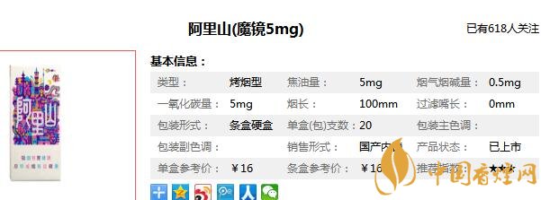 阿里山白魔鏡香煙參數(shù)信息