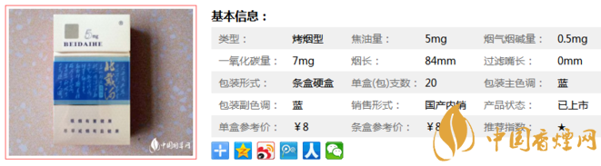 北戴河硬混5mg香煙價格多少 北戴河硬混5mg口感及參數