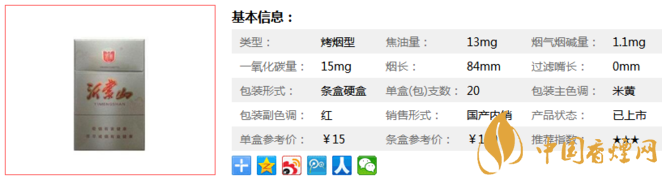 三、將軍功勛沂蒙山香煙參數(shù)