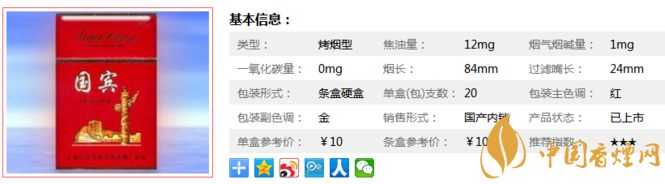 以上便是由香煙網(wǎng)小編為大家介紹的關(guān)于國賓硬紅價格及參數(shù) 好評無數(shù)的國賓代表作香煙!的相關(guān)信息,想要了解更多有關(guān)內(nèi)容請點擊:國賓香煙多少錢一包 國賓香煙價格表和圖片大全(5款)