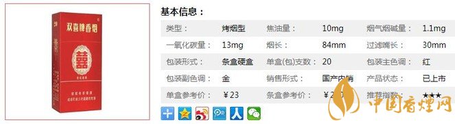 雙喜硬世紀(jì)經(jīng)典煙支長(zhǎng)84mm,產(chǎn)品精選美國(guó)、津巴布韋、贊比亞等國(guó)際優(yōu)質(zhì)煙葉原料和云南、貴州、四川、湖南等國(guó)內(nèi)知名產(chǎn)區(qū)的上等煙葉。香醇度很高的煙氣層次分明、協(xié)調(diào)、成團(tuán)性也很好,感受舒適。下面我們一起來看雙喜硬世紀(jì)經(jīng)典的參數(shù)信息:焦油量:10mg. 煙堿量:1.1mg. 一氧化碳量:13mg.