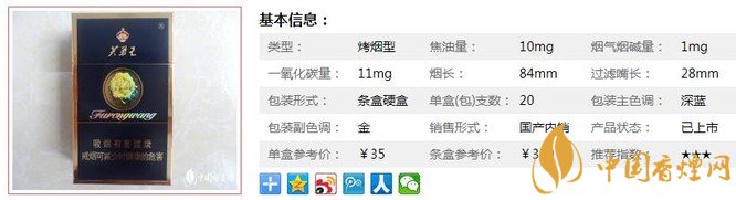 | 類型 :烤煙型 | 焦油量 :10mg | 煙氣煙堿量 :1mg | 一氧化碳量 :10mg |