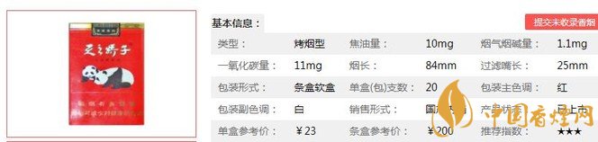 | 類型 :烤煙型 | 焦油量 :10mg | 煙氣煙堿量 :1.1mg | 一氧化碳量 :11mg |