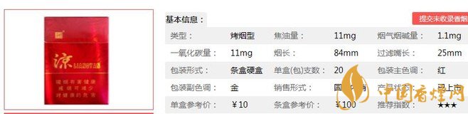 | 類型 :烤煙型 | 焦油量 :11mg | 煙氣煙堿量 :1.1mg | 一氧化碳量 :11mg |