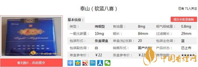 以上便是由香煙網(wǎng)小編為大家介紹的關(guān)于 泰山軟藍八喜價格和參數(shù) 泰山軟藍八喜口感分析的相關(guān)信息,想要了解更多有關(guān)內(nèi)容請點擊:雙喜國喜軟藍口感測評 清爽醇雅甜潤怡然