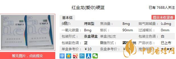 90mm的超長煙支,配搭5.45mm的細(xì)支直徑,滿足了吸食者新鮮有趣的消費(fèi)體驗(yàn)。8毫克焦油含量,實(shí)現(xiàn)香韻與吸食感的完美統(tǒng)一,口感柔和細(xì)膩、煙氣淡雅醇厚。下面我們一起來看紅金龍硬藍(lán)愛你的參數(shù)信息:焦油量:8mg 煙堿量:0.8mg 一氧化碳量:8mg