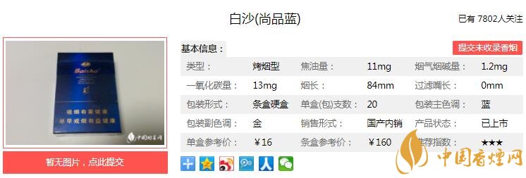 以上便是由香煙網(wǎng)小編為大家介紹的關(guān)于白沙尚品藍多少錢一包 白沙尚品藍口感及參數(shù)介紹的相關(guān)信息,想要了解更多有關(guān)內(nèi)容請點擊:好貓金絲猴大圣歸來香煙價格 好貓大圣歸來口感分析