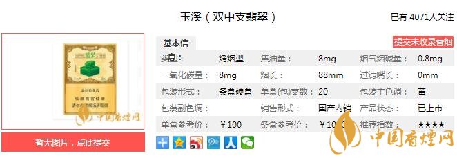 以上便是由香煙網(wǎng)小編為大家介紹的關(guān)于玉溪翡翠香煙價格 玉溪翡翠多少錢一包的相關(guān)信息,想要了解更多有關(guān)內(nèi)容請點(diǎn)擊:泰山望岳價格 山東中煙低焦產(chǎn)品的經(jīng)典之作
