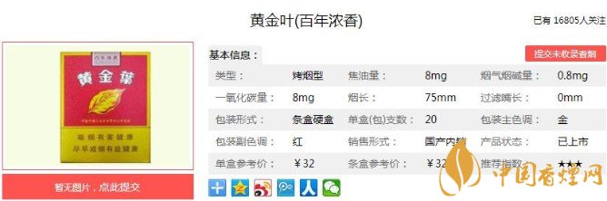 黃金葉白年濃香的煙葉是由襄城“百年煙莊”專供,1913年成功引種美國(guó)烤煙,完熟煙葉經(jīng)600天自然醇化而成。同時(shí)也是第一款專線定制而成的高檔短支煙。銷售價(jià)格也只需要32元一包。