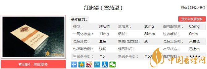 很多打開香煙煙盒,不仔細(xì)看還不知道,其實(shí)這是一款雪茄香煙。只不過大小和長(zhǎng)度,全部是和普通香煙一樣的外觀。除了煙支可吸食部分是黃色,其他的地方根本看不出來這是雪茄。降焦線的設(shè)計(jì),這款香煙可以說是完美了。下面便是紅旗渠(雪茄型)的基本參數(shù):焦油量:10mg 煙堿量:0.9mg 一氧化碳量:11mg.