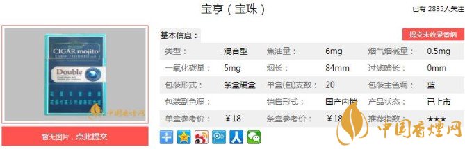 以上便是香煙網小編為大家介紹的關于寶亨寶珠多少錢一包 寶亨寶珠價格及口感分析的相關信息,看完之后大家是不是對于寶亨(寶珠)這款香煙的相關信息更加了解呢。大家還想查詢更多的相關內容歡迎點擊:寶亨莫吉托爆珠多少錢 寶亨莫吉托double爆珠香煙價格15元/包