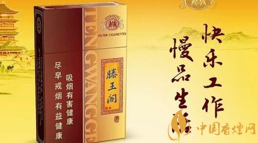金圣滕王閣(漁舟唱晚),包裝非常漂亮,顯得高檔大氣,。右邊三分之一是棕褐色的,左邊三分之二淡黃色的,煙體正面左邊的中間用藍色字體赫然寫著滕王閣幾個大字,中間印著一座美麗的滕王閣樓,下面還有山水陪襯,整體包裝彰顯出其高檔大氣的特性。#p#副標(biāo)題#e#