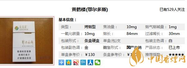 以上內(nèi)容是由香煙網(wǎng)小編為大家收集以及整理的關(guān)于,黃鶴樓鄂爾多斯多少錢一包以及黃鶴樓鄂爾多斯價(jià)格圖片相關(guān)的信息,了解更多有關(guān)信息請(qǐng)點(diǎn)擊:黃鶴樓雪茄型香煙價(jià)格表。