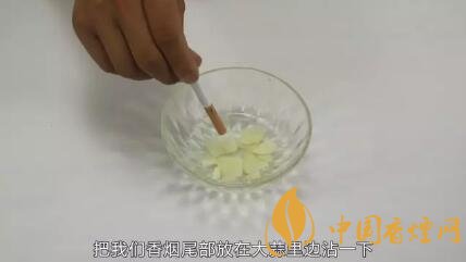 第二個(gè)小妙招也很簡(jiǎn)單,只需要準(zhǔn)備一個(gè)容器,然后用到家中常用的大蒜,把大蒜切成蒜片裝在容器里,然后倒入一點(diǎn)清水一起攪拌均勻,讓大蒜的溶液滲入到水中,待溶液靜置15分鐘,靜置15分鐘之后想抽煙時(shí),拿著香煙把香煙尾部放在大蒜里邊沾一下,因?yàn)橄銦煹奈膊克鼤?huì)吸入一些大蒜汁,大蒜汁有辛辣味,我們?cè)诔闊煹那闆r下這樣沾上然后點(diǎn)燃香煙,讓我們抽上兩口之后就感覺煙是沒有味道的,而且有惡心嘔吐的感覺。