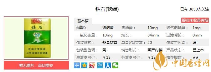 以上便是由香煙網(wǎng)小編為大家介紹的關(guān)于鉆石軟綠好抽嗎 鉆石軟綠價(jià)格及口感分析的相關(guān)信息,想要了解更多有關(guān)內(nèi)容請(qǐng)點(diǎn)擊:嬌子X(jué)冰爆多少錢一包 嬌子X(jué)冰爆口感及參數(shù)介紹