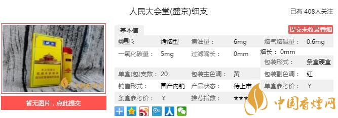 煙盒的整體包裝設計上來看,盛京讓人記憶起了中國最后一個封建王朝的舊事,皇家元素更為濃郁。煙氣細膩、柔和,香氣溫潤、簡潔,回味甘甜、生津,無沖鼻感辣喉感,人民大會堂(盛京)細支,目前還沒有上市,售價未知。