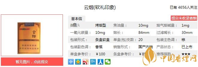 以上便是由香煙網(wǎng)小編為大家介紹的關(guān)于云煙軟禮印象怎么樣 云煙軟禮印象口感及參數(shù)介紹的相關(guān)信息,想要了解更多有關(guān)內(nèi)容請點(diǎn)擊:黃金葉天韻多少錢一包 黃金葉天韻口感及參數(shù)分析
