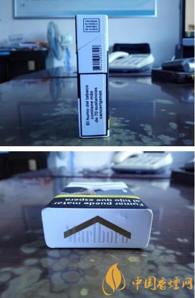 煙盒左側(cè)的內(nèi)容,也與免稅版本相同。又是一款過濾嘴為FIRM FILTER樣式的萬寶路。
