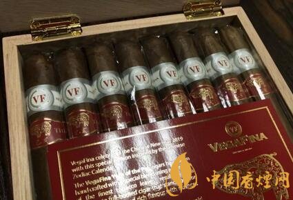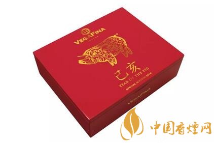 和很多中國新年設(shè)計一樣,這款雪茄采用紅色的盒子,帶有金色的裝飾,盒子采用翻蓋漆盒。每個盒子里面有16支雪茄。雪茄上帶有兩個標(biāo)簽,一個是唯佳的標(biāo)準(zhǔn)標(biāo)簽,一個是紅色印有一頭金色豬和中文乙亥的標(biāo)簽。