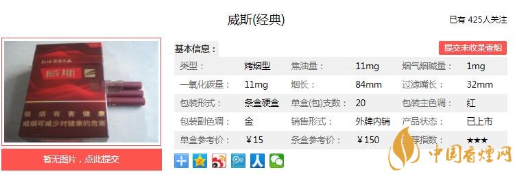 以上便是由香煙網(wǎng)小編為大家介紹的關(guān)于威斯經(jīng)典多少錢一包 威斯經(jīng)典口感及參數(shù)介紹的相關(guān)信息,想要了解更多有關(guān)內(nèi)容請(qǐng)點(diǎn)擊:威斯小熊貓價(jià)格及參數(shù) 威斯小熊貓獨(dú)家口感分析