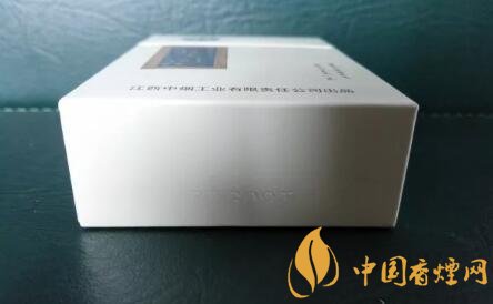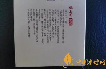 整體的包裝設計,類似于純白皮版本。王子安的名句“落霞與孤鶩齊飛,秋水共長天一色”,赫然印制于煙盒正面。