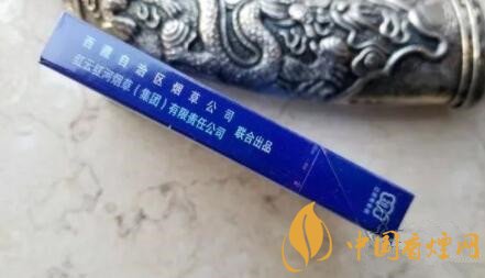 煙盒正反版面一樣,上蓋位置有雪峰日照金山,彌漫的云霧拱衛(wèi)金頂。只是細支的這個圖片質量不太理想。煙盒的中部是金色藏文書寫風格的“雪域”字樣。居中,有藍色的蓮花座圖案。下有銀色小字——西藏自治區(qū)煙草公司總經(jīng)銷。