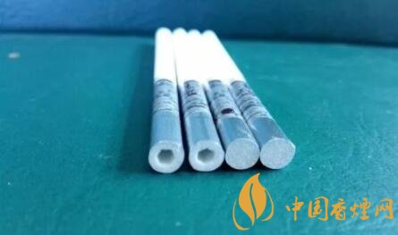 剪開(kāi)鏤空樣式的過(guò)濾嘴,會(huì)發(fā)現(xiàn)有一層薄薄的黃色紙張,附著于過(guò)濾嘴紙張之上。鏤空過(guò)濾嘴的長(zhǎng)度,約為6mm。