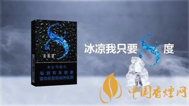 此款雙爆包裝和8度單爆基本是一樣的設計,只是在8字圓環(huán)處采用了藍綠2種配色,兩片綠葉襯托著一顆冰珠,并釋放微光,表述這款香煙是兩種口味的爆珠。