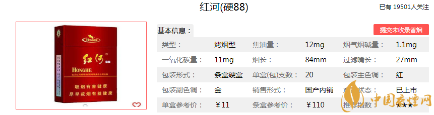 紅河香煙大家應(yīng)該都不陌生,紅河旗下有許多知名的香煙品牌。每一款“紅河”卷煙,都是選用三年以上自然醇化的云南優(yōu)質(zhì)煙葉及國(guó)外優(yōu)質(zhì)煙葉為配方的主料原料,煙香自然、純正,煙氣醇和、圓潤(rùn),受到煙民一致好評(píng)。今天小編就為大家介紹紅河88香煙,紅河88有兩款,下面就帶大家一起看看紅河軟88與紅河硬88的香煙價(jià)格參數(shù)以及紅河88口感介紹。