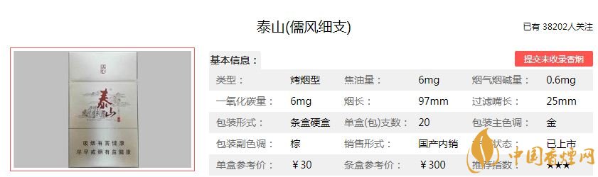 泰山是山東的香煙品牌,一直以來,泰山香煙的受到煙民的喜歡。今天帶大家了解一款泰山細(xì)儒風(fēng)香煙,泰山細(xì)儒風(fēng)好抽嗎?下面是泰山細(xì)儒風(fēng)的價格參數(shù)以及抽過這款泰山香煙的煙民對他的評價,感興趣的一起來看看吧!