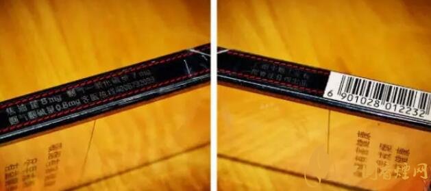 左側(cè):真龍香煙燃情時(shí)光顯示了焦油量8MG/煙堿0.8MG/煙氣7MG,細(xì)支里來(lái)說(shuō)屬于中上水平了,并有客服熱線(xiàn)。右側(cè)則是出品方廣西中煙和條形碼。