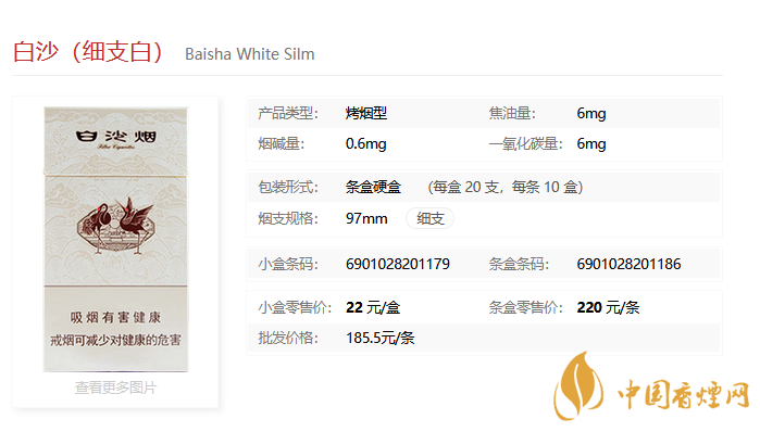 白沙細(xì)支白參數(shù)信息一覽