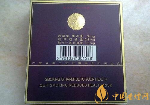 煙盒周?chē)o以金色鑲邊,泛彩鎏金,同時(shí)也顯得中規(guī)中矩。主色調(diào)為醬紫色,色彩厚重沉穩(wěn),高貴但不張揚(yáng),厚重又不是喜慶。廣東中煙雙喜典藏逸品怎么樣?下方是理化指標(biāo):焦油量:8mg 煙氣煙堿量:0.8mg 煙氣一氧化碳量:10mg,最下方是條碼及公司名稱(chēng)。