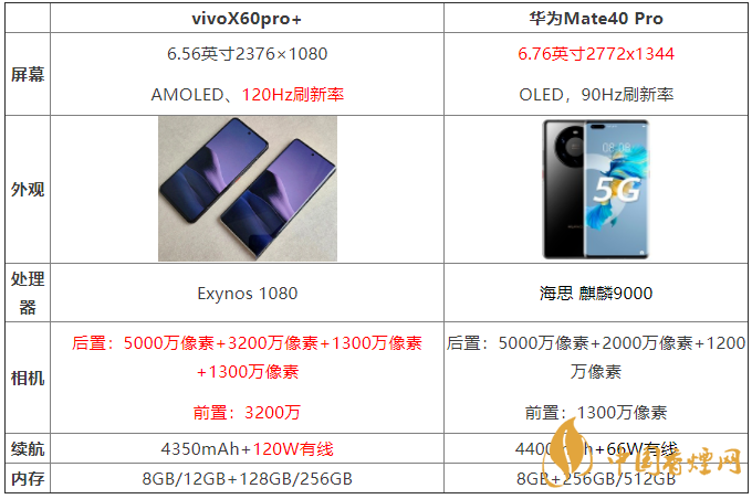總結:華為Mate40 Pro的分辨率更高屏幕更大-些,但vivoX60pro+ 支持更高的120Hz刷新率。