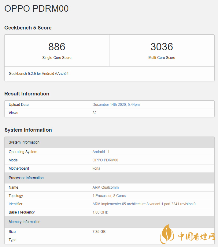 Reno5 Pro + 已出現(xiàn)在 Geekbench 的測試平臺(tái)上。在 Geekbench 5 上,Reno5 Pro + 在 Geekbench 5 的單核和多核測試中,分別獲得了 886 分和 3036 分。