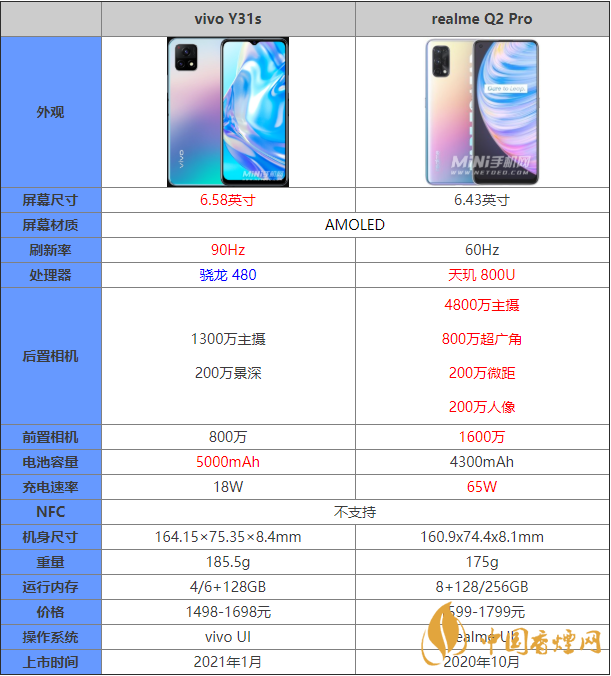 vivoY31s和realmeQ2Pro哪款手機更好?這兩款手機都在千元機的范疇內(nèi),那么這款兩款手機在配置上有什么區(qū)別,哪個更值得入手?接下來香煙網(wǎng)小編就為大家?guī)砹嗽敿毜膮?shù)對比,感興趣的朋友一起看看吧!