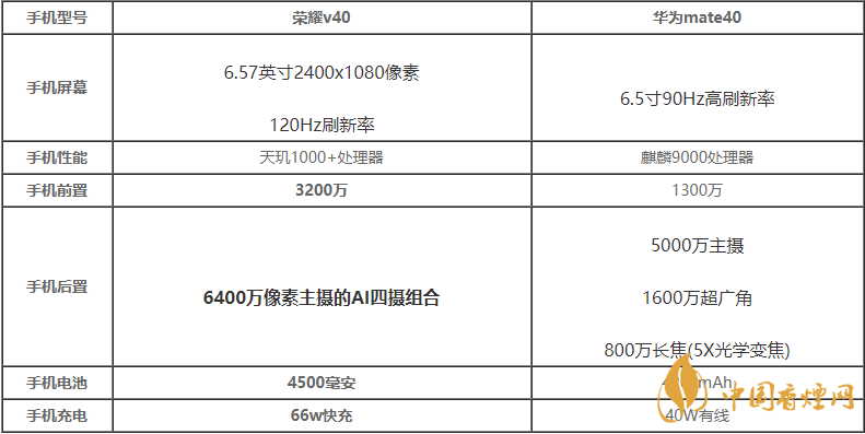 榮耀v40和華為mate40是二款中高端5g手機(jī),從目前網(wǎng)上曝光的信息看,二款手機(jī)的參數(shù)配置都十分強(qiáng)悍,那么榮耀v40和華為mate40哪個(gè)好呢?有什么區(qū)別?接下來香煙網(wǎng)小編將對(duì)榮耀v40和華為mate40參數(shù)對(duì)比,一起來看看參數(shù)對(duì)比吧~