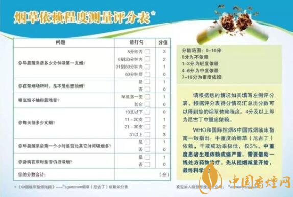煙草成癮即尼古丁成癮,是國際衛(wèi)生組織公認(rèn)的一項(xiàng)疾病,需要用科學(xué)的方法戒煙,才能達(dá)到最好的戒煙效果。在戒煙前,煙民朋友應(yīng)充分了解自身情況??筛鶕?jù)上方的《煙草依賴程度評分表》,對自己的煙癮水平進(jìn)行一個(gè)評估。0-3分為輕度煙草依賴,4-6分為中度煙草依賴,7分以上為重度依賴。超過4分的煙民朋友們,已經(jīng)為中重度煙草依賴患者。對于這類煙民朋友,“干戒”成功率極低,僅為3%,建議去正規(guī)醫(yī)院的戒煙門診,用藥物治療的方法來幫助擺脫煙草依賴,減少戒斷反應(yīng),降低痛苦,用科學(xué)的方法盡早戒煙。
