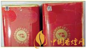 真煙的拉帶線為不干膠專用拉帶線,在紫外熒光燈的照射下會顯示紅色字母圖案,在正常光線下變換不同角度觀察時(shí)會變換出紫紅色;假煙的拉帶線均為普通拉帶線,生產(chǎn)工藝粗糙,不具備真煙拉帶線所呈現(xiàn)出來的特征及效果。