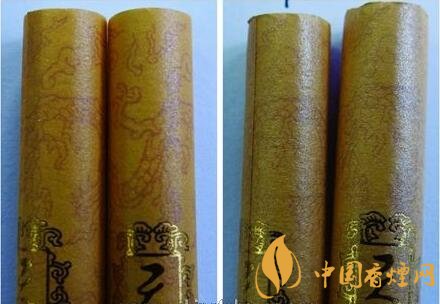 真品煙支接裝紙采用環(huán)保漆印有“海水江崖云龍”圖樣,圖樣清晰完整;假煙煙支接裝紙采用普通仿印,圖樣模糊不清。同時,真品濾嘴棒是二元復(fù)合溝槽濾嘴,其中靠內(nèi)的一段采用有高技術(shù)含量的生物制劑降焦減害顆粒;假煙濾嘴棒采用單一溝槽濾嘴,濾嘴材質(zhì)粗劣。
