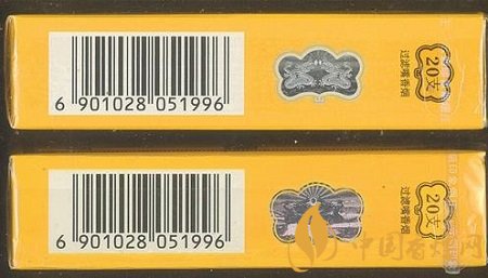 上真下假 真煙側(cè)面的“雙龍戲珠”鐳射印刷清晰,立體感強(qiáng),特別是珠子有強(qiáng)烈的類似子彈射出感。假煙的“雙龍戲珠”鐳射印刷模糊,無立體感,整體比真煙偏大。