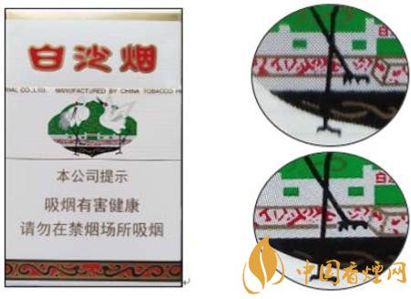 白沙(硬)因江南名泉式 ---“白沙古井”而得名,包裝以“白沙古井” 為背景,象征吉祥如意的雙鶴圖形為主體圖案。產(chǎn)品不斷應(yīng)用新技術(shù),科學(xué)配方,合理配香配料,口味特點(diǎn):煙香濃馥、諧調(diào),余味純正舒適。現(xiàn)就該卷煙小盒鑒別方法介紹如下: