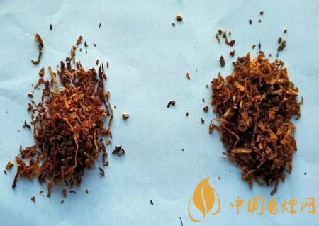 真煙:煙絲成絲率高,無(wú)膨脹葉絲和膨脹梗絲,有造紙法再造煙葉。(左真右假)