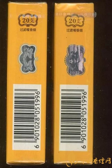 假煙: 1.拉線頭形狀偏尖。2.拉線上的“云煙印象煙莊”字體無(wú)紫外熒光效果,顏色較淡,無(wú)明顯的泛白效果。3.“雙龍戲珠”鐳射印刷模糊,無(wú)立體感,整體比真煙偏大。